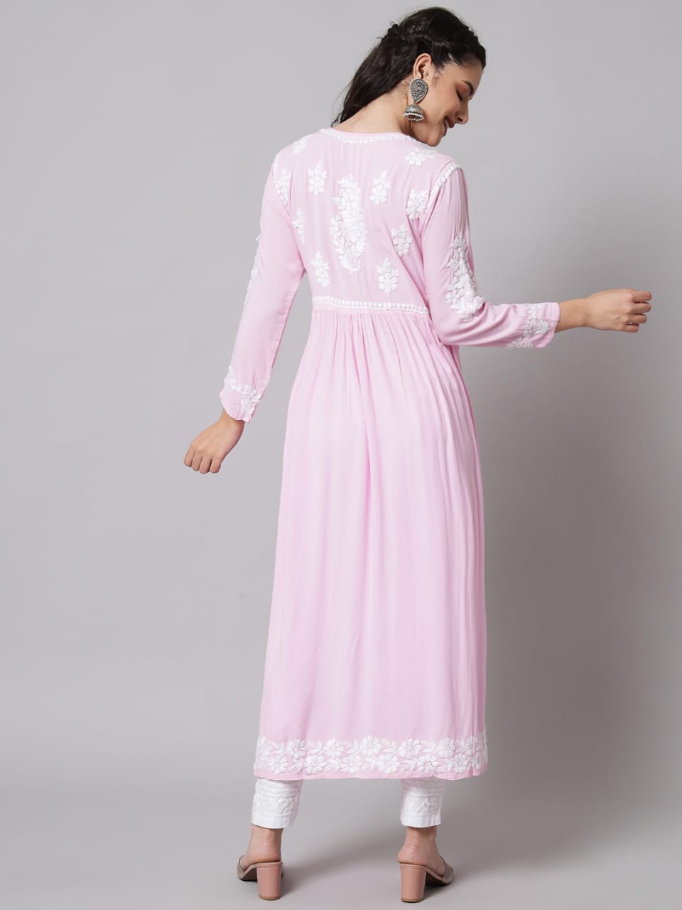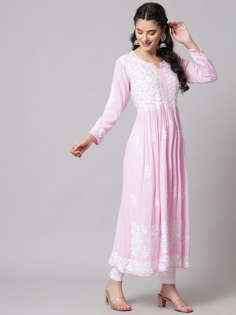 Librose heavy work Pink gown lucknow Chikankari embroidered| Lucknowi craft| Reyon gown