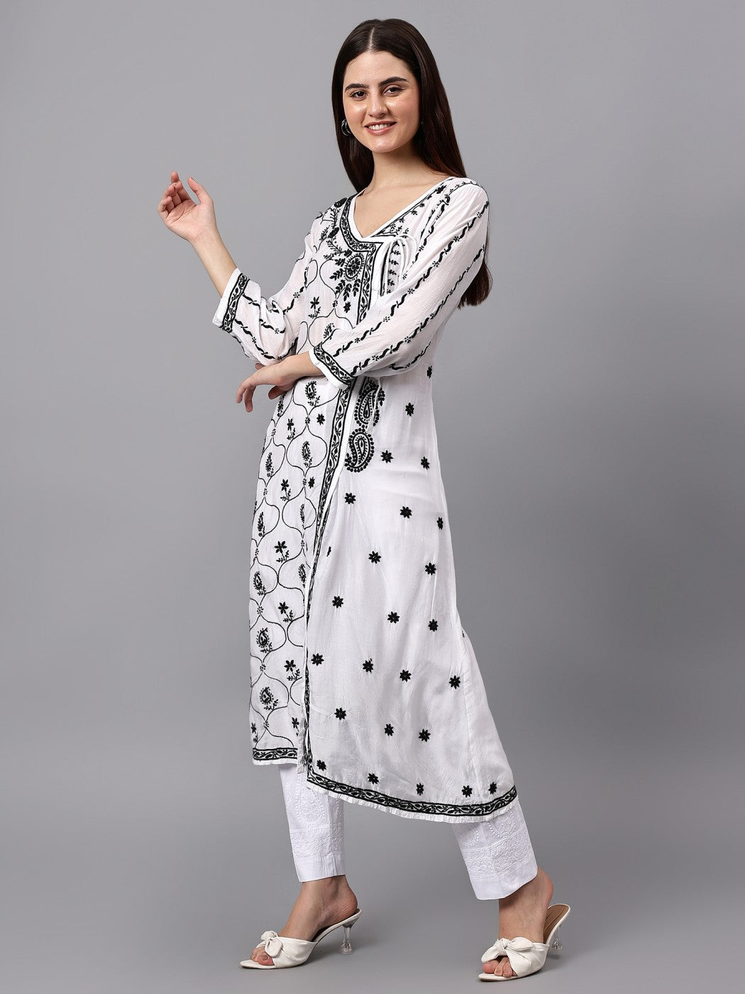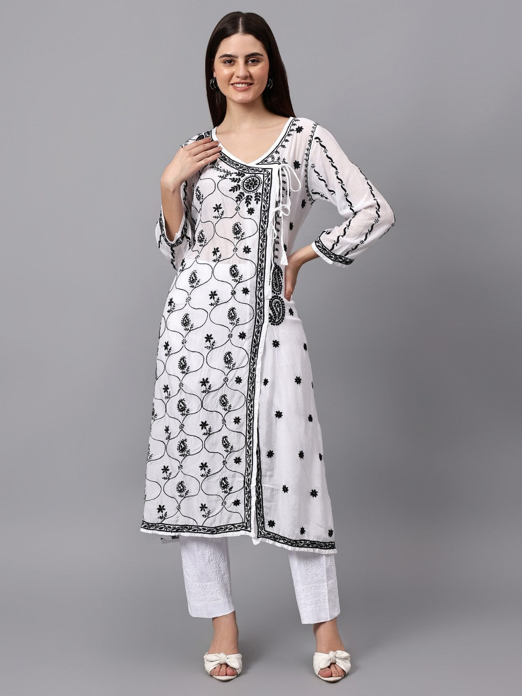 Librose Lucknowi Chikankari Premium Muslin Angrakha Kurta for women, Girls and ladies