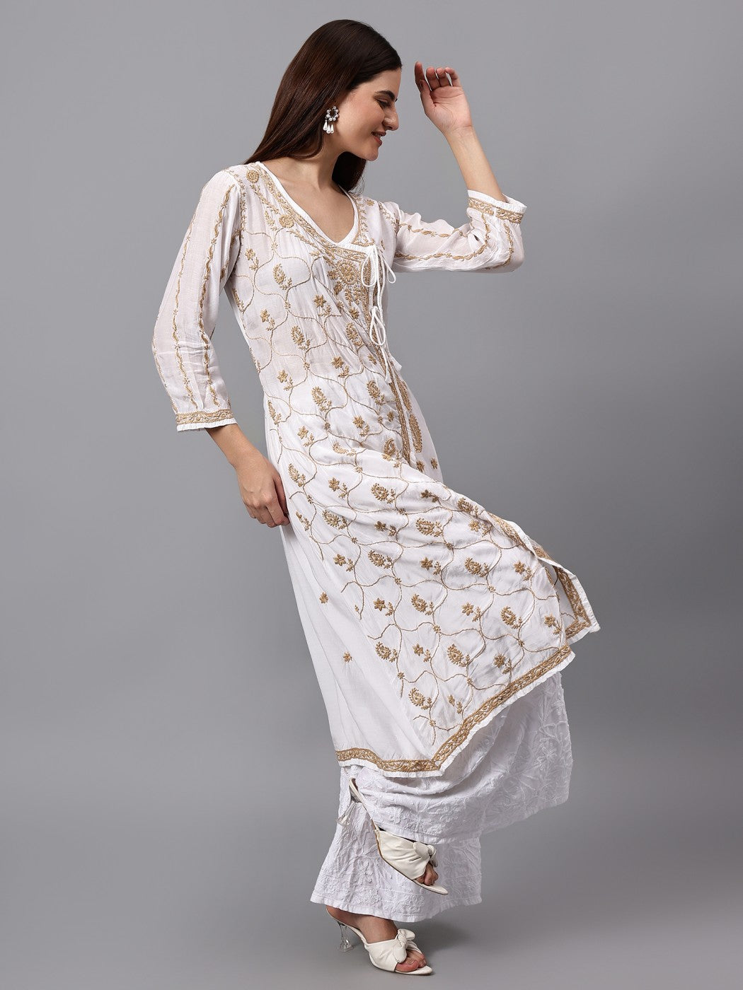 Librose Lucknowi Chikankari Premium Muslin Angrakha Kurta for women, Girls and ladies