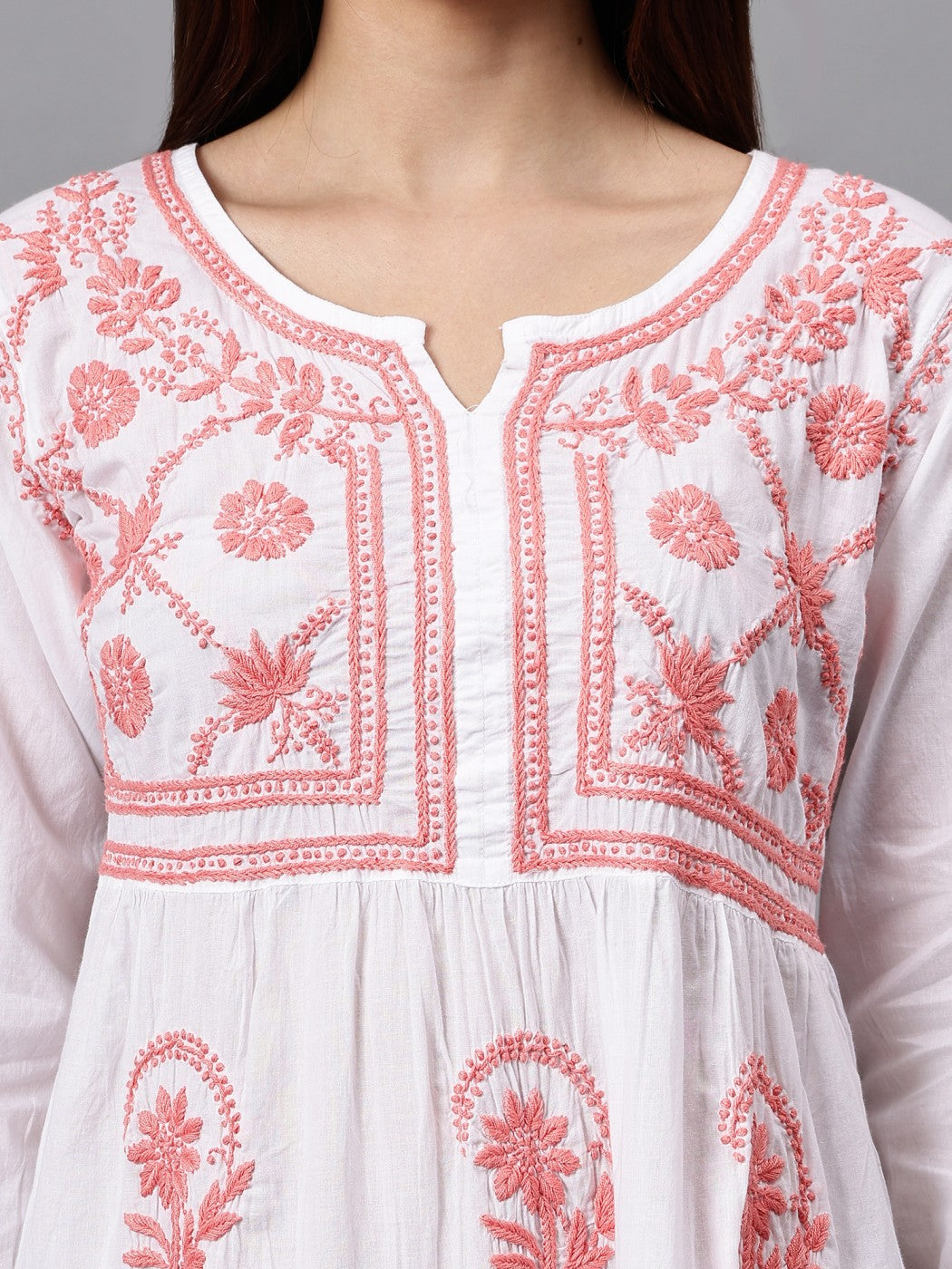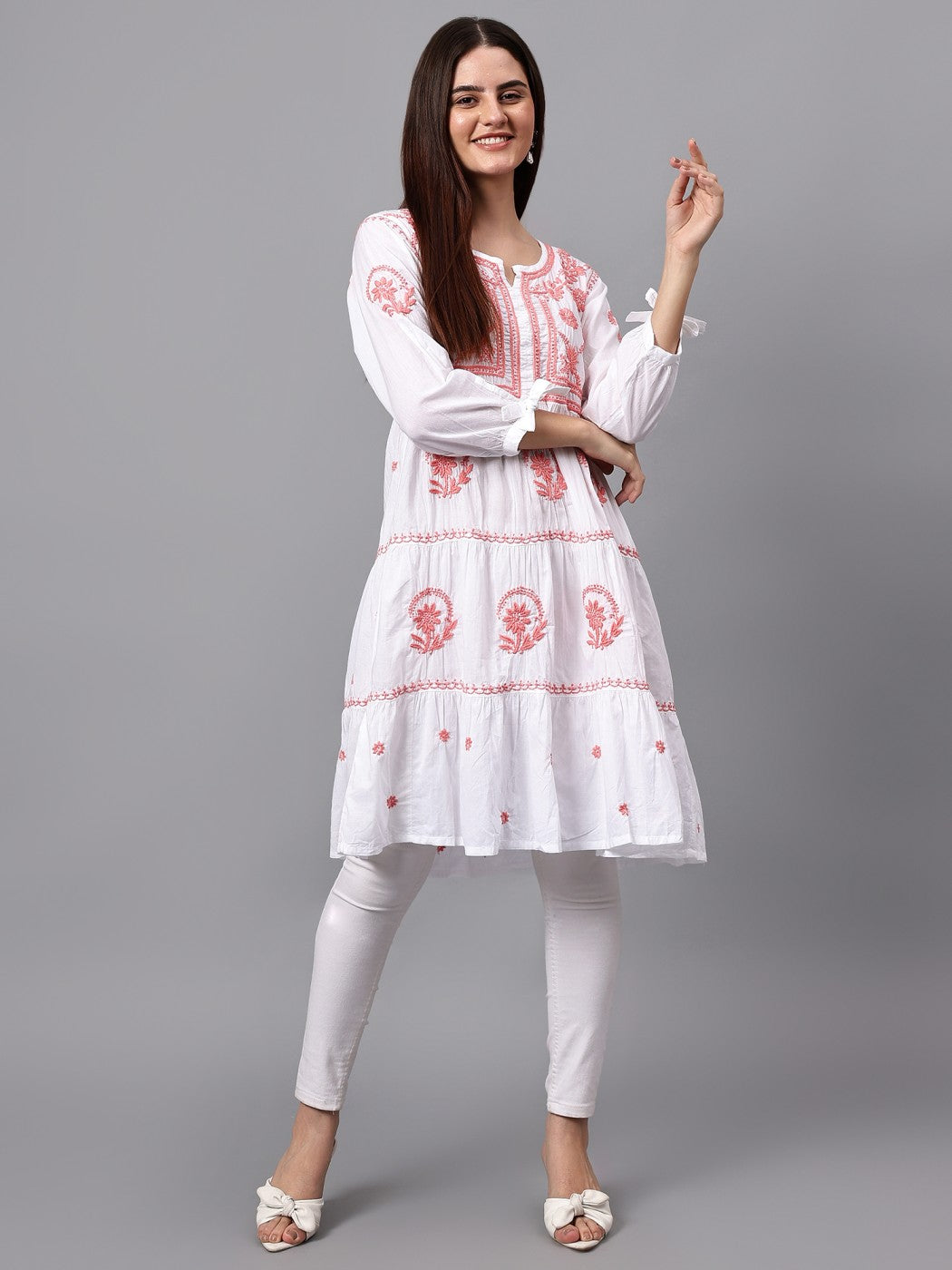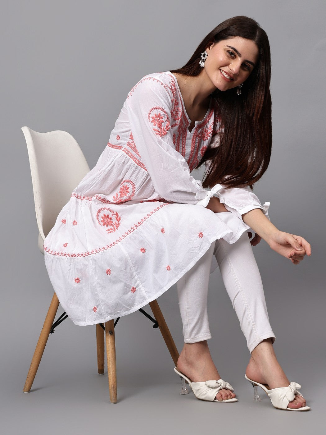 Librose Lucknowi Chikankari pure soft cotton tunic short Gown for girls and women
