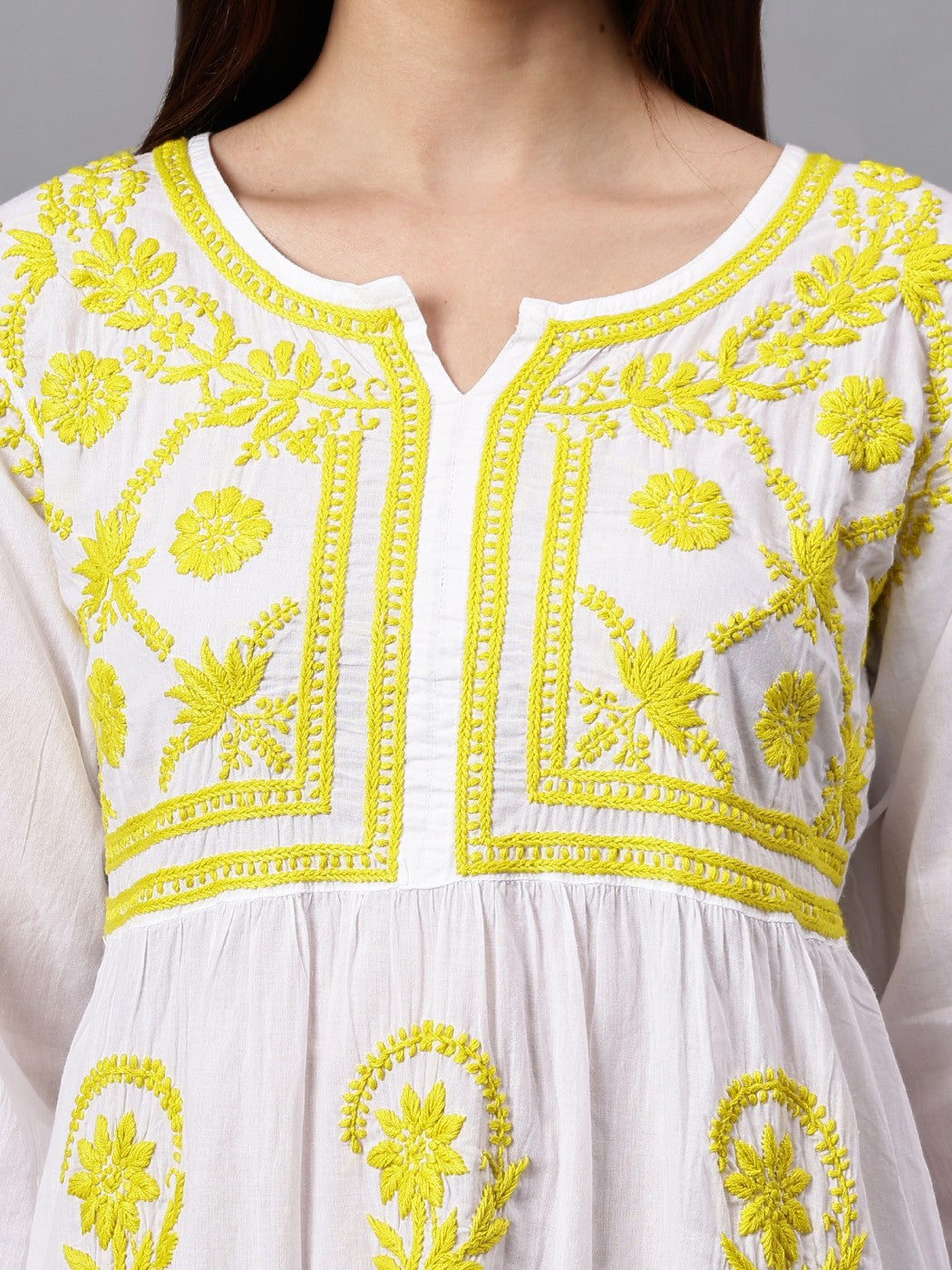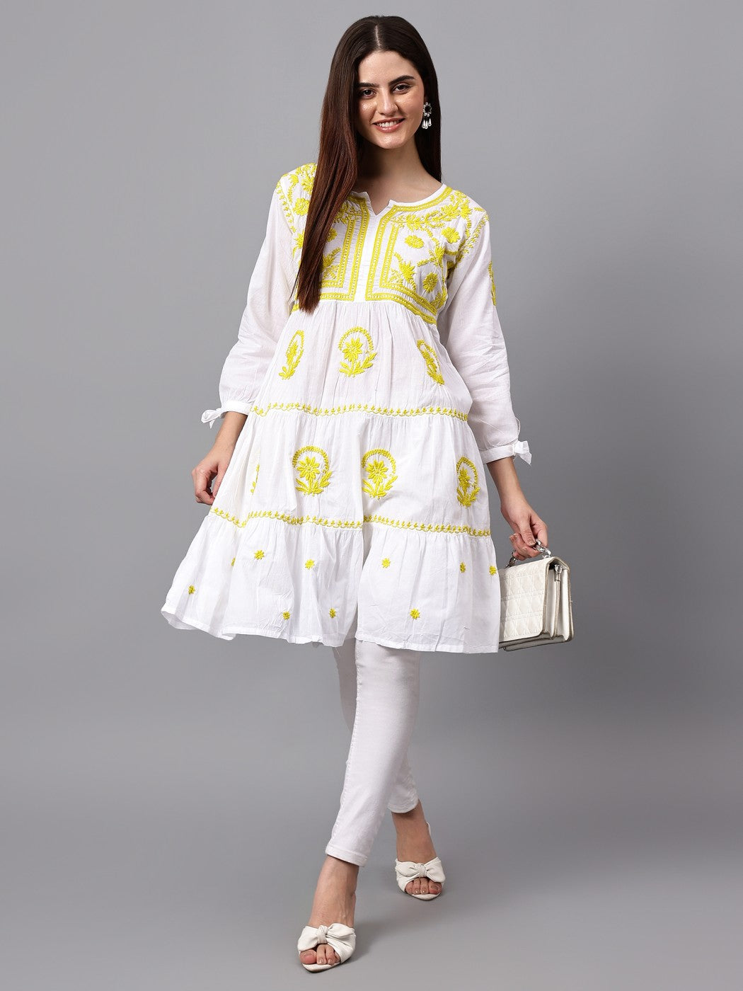 Librose Lucknowi Chikankari pure soft cotton tunic short Gown for girls and women