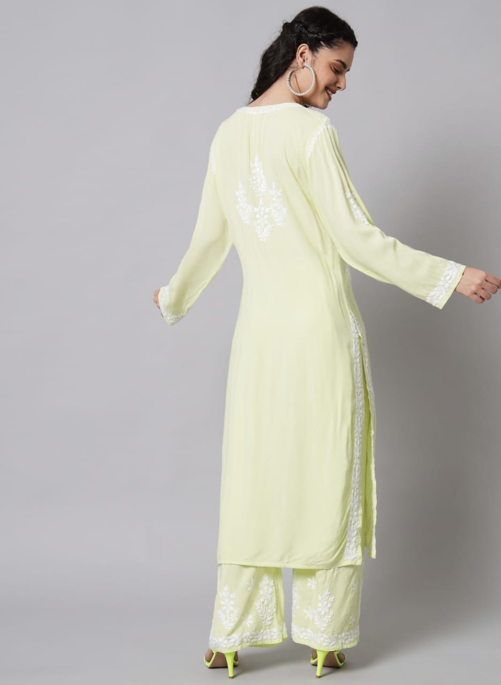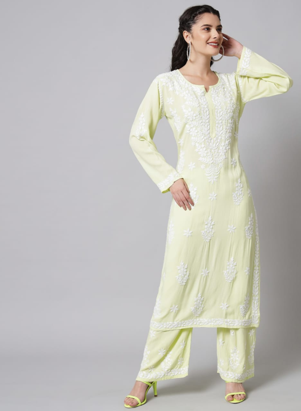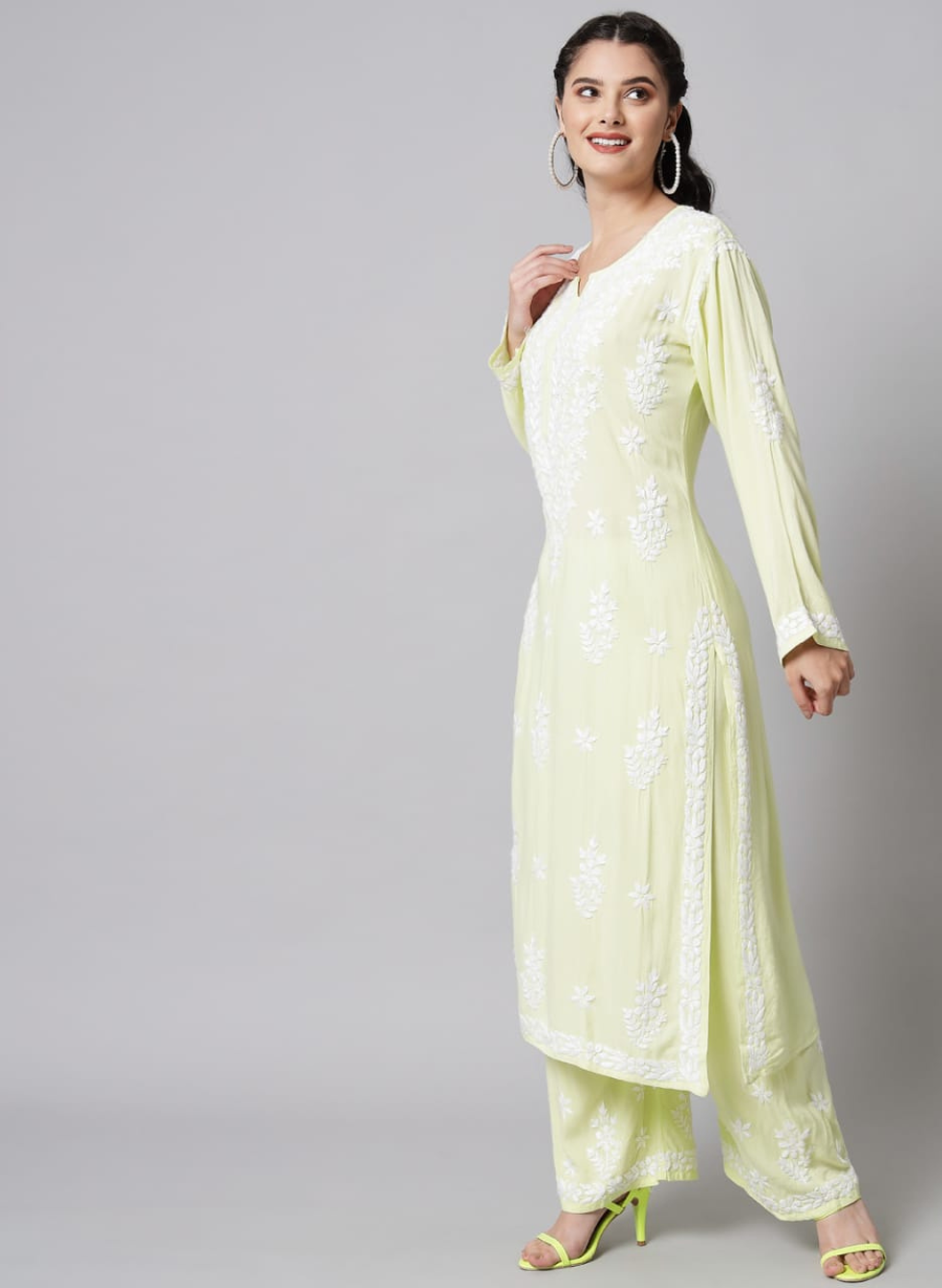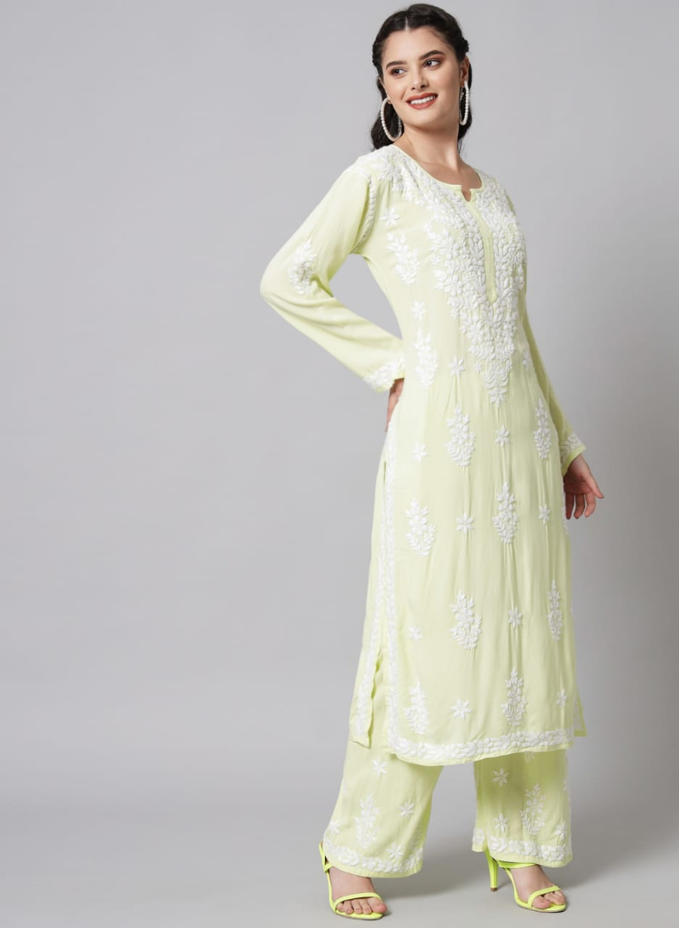 Librose Modal Plazzo set for Women| Pista Green| Lucknowi Chikankari| Modal Fabric