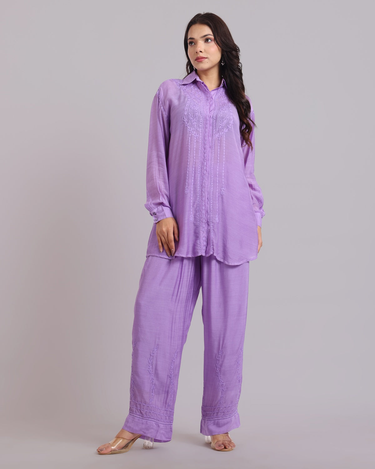 Librose Muslin Chikankari Embroidered 2Pc Co-ord set for women| Lucknowi Craft