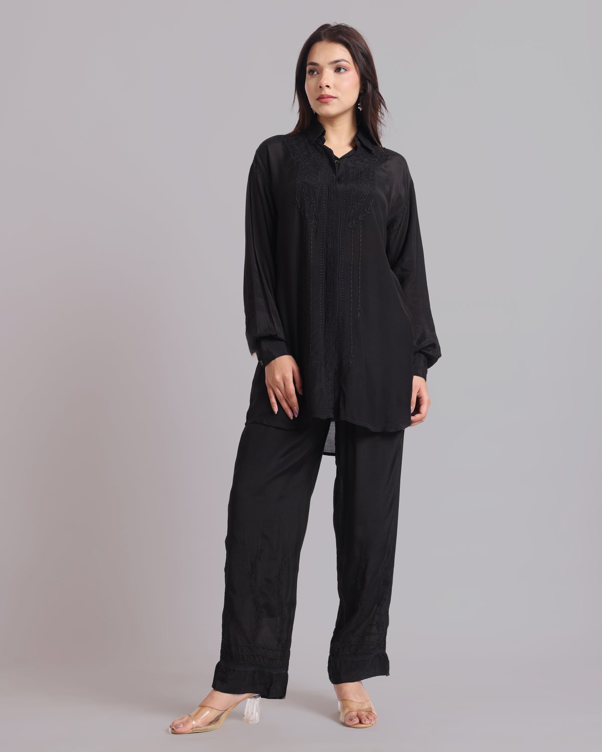 Librose Muslin Chikankari Embroidered 2Pc Co-ord set for women| Lucknowi Craft