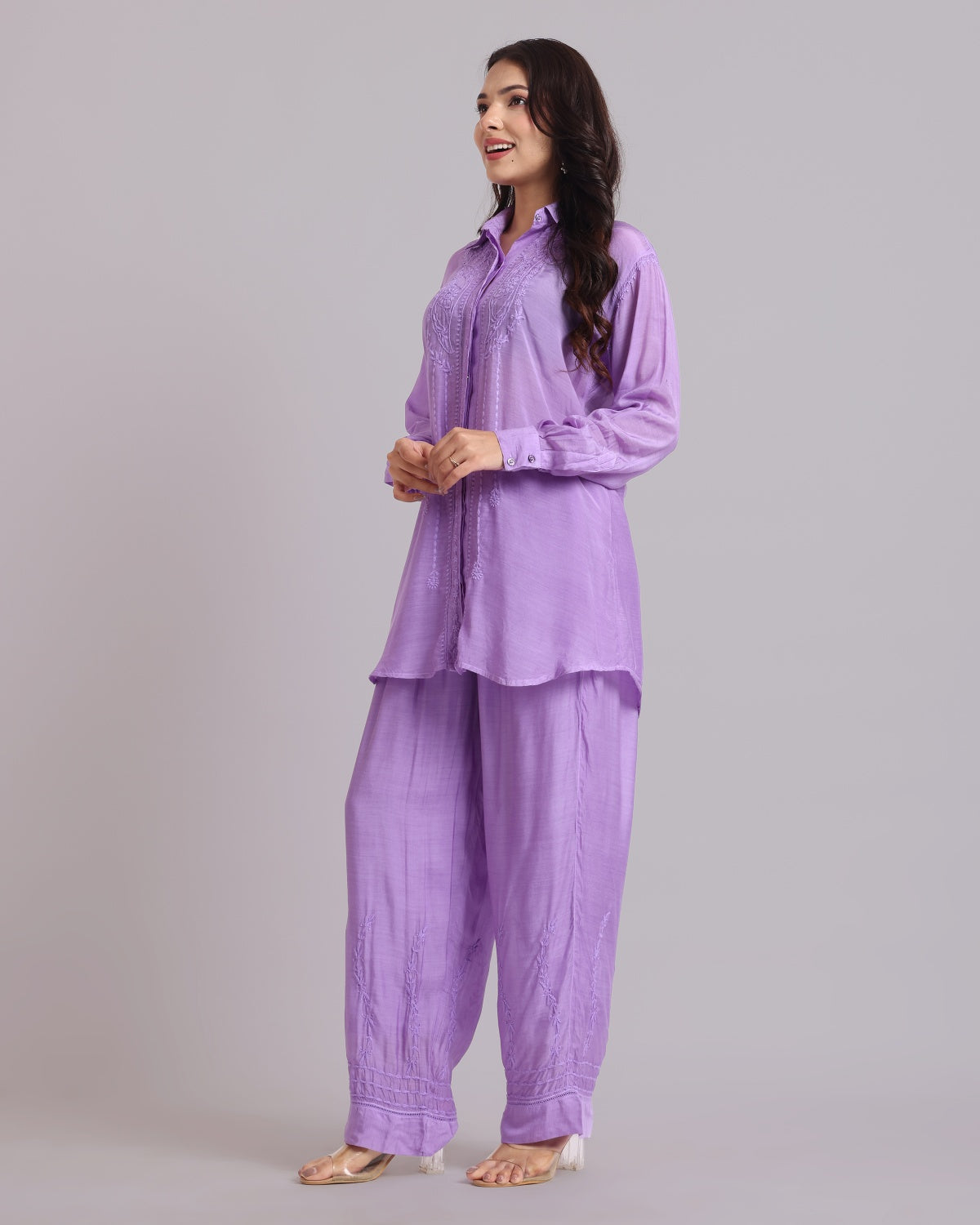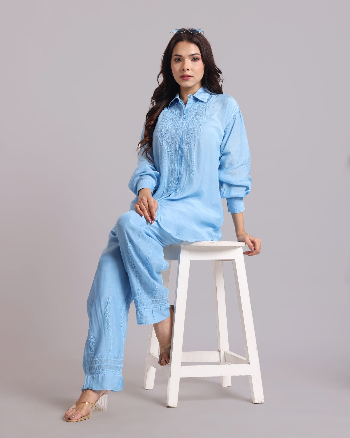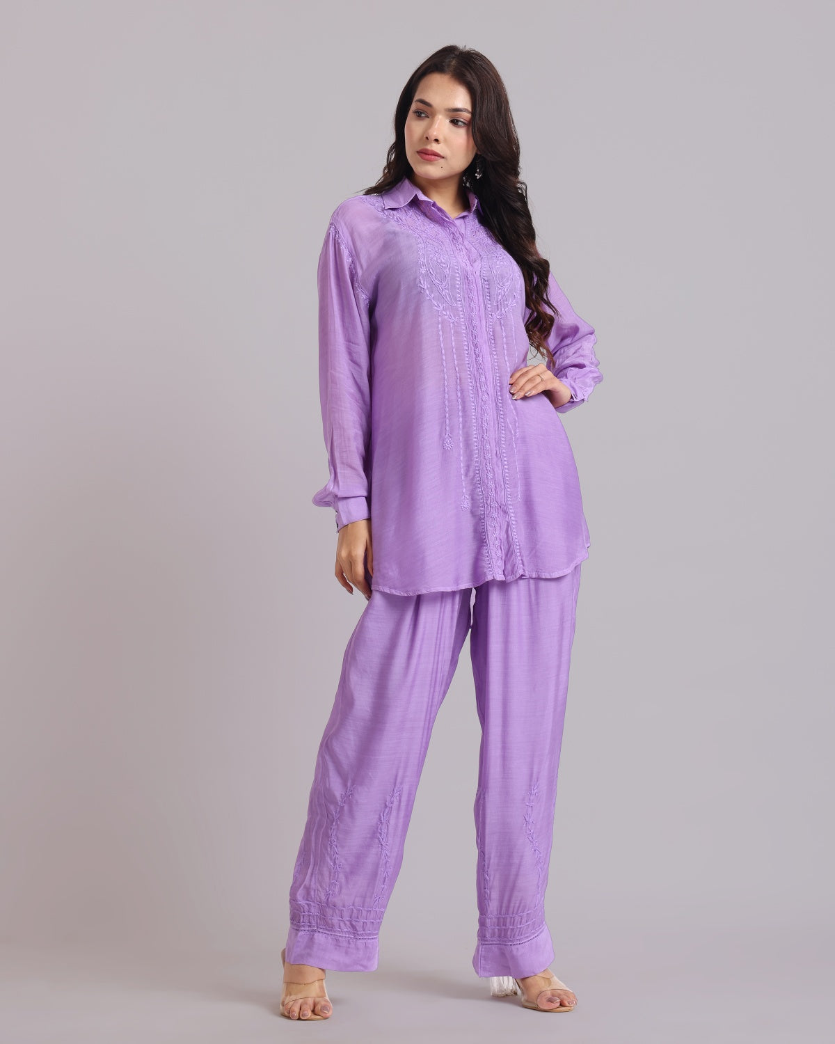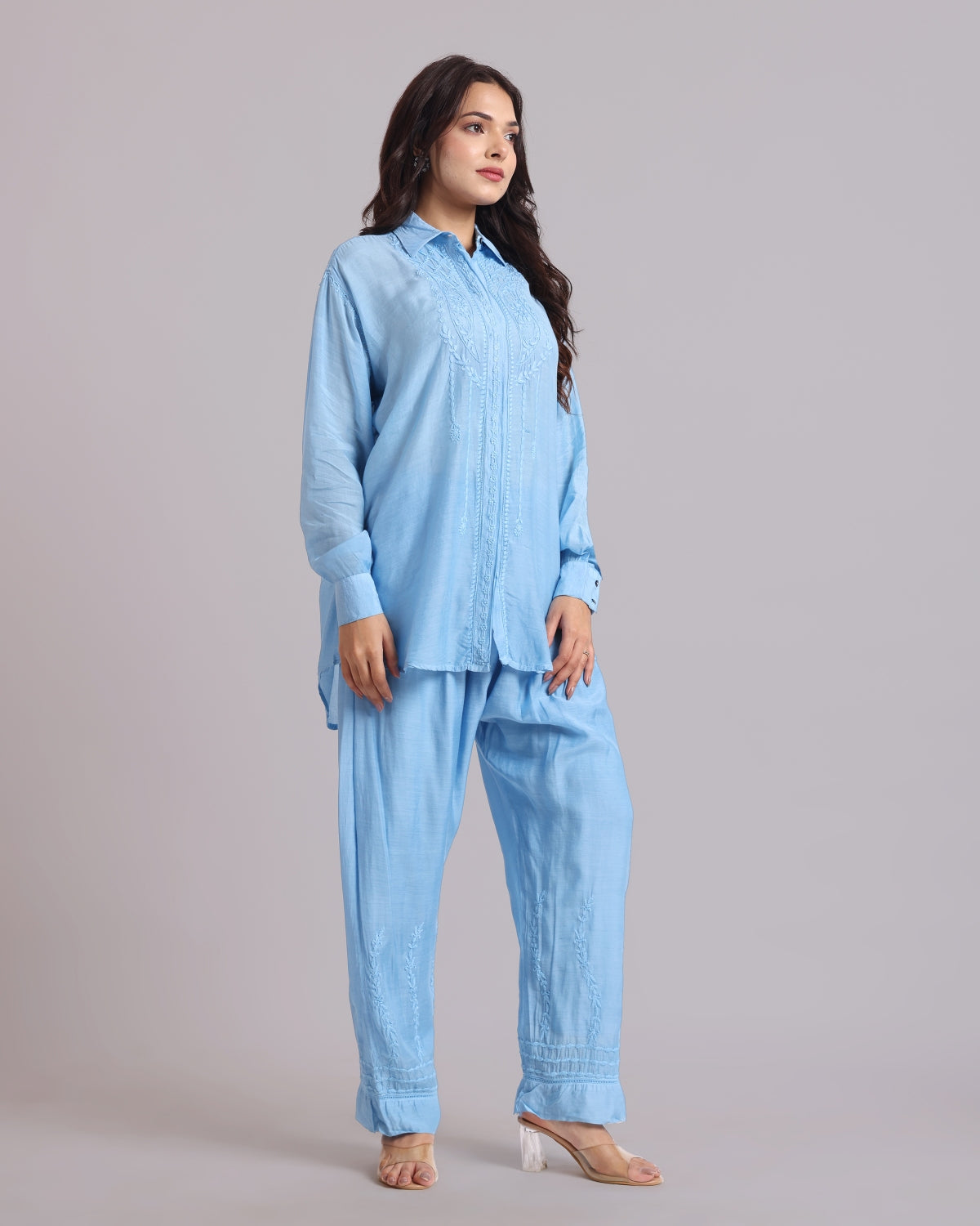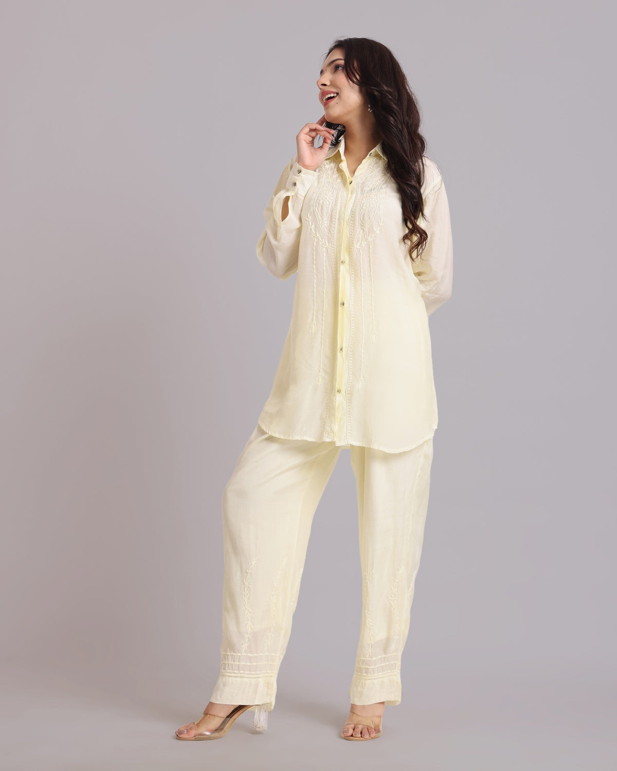 Librose Muslin Chikankari Embroidered 2Pc Co-ord set for women| Lucknowi Craft
