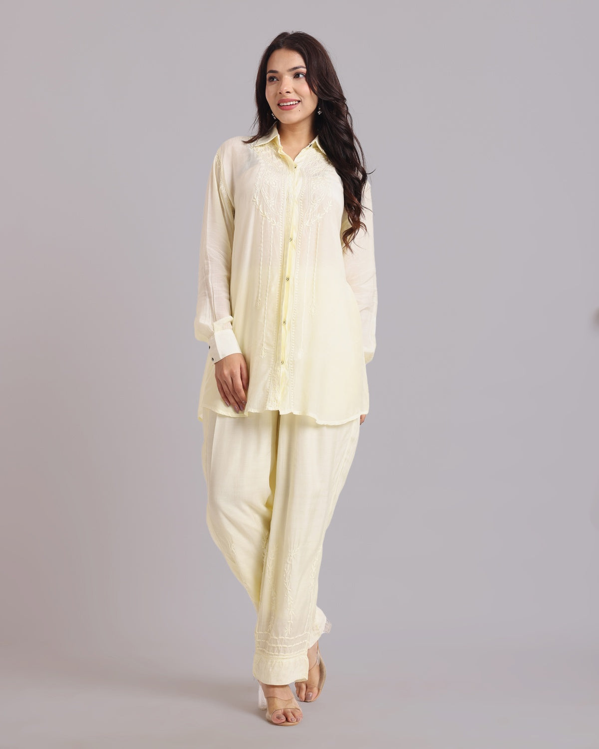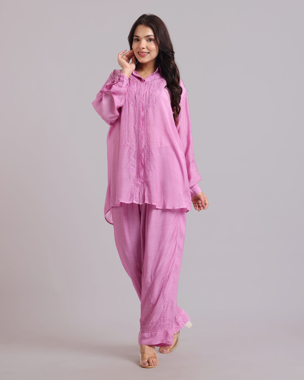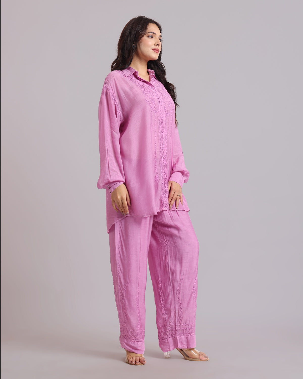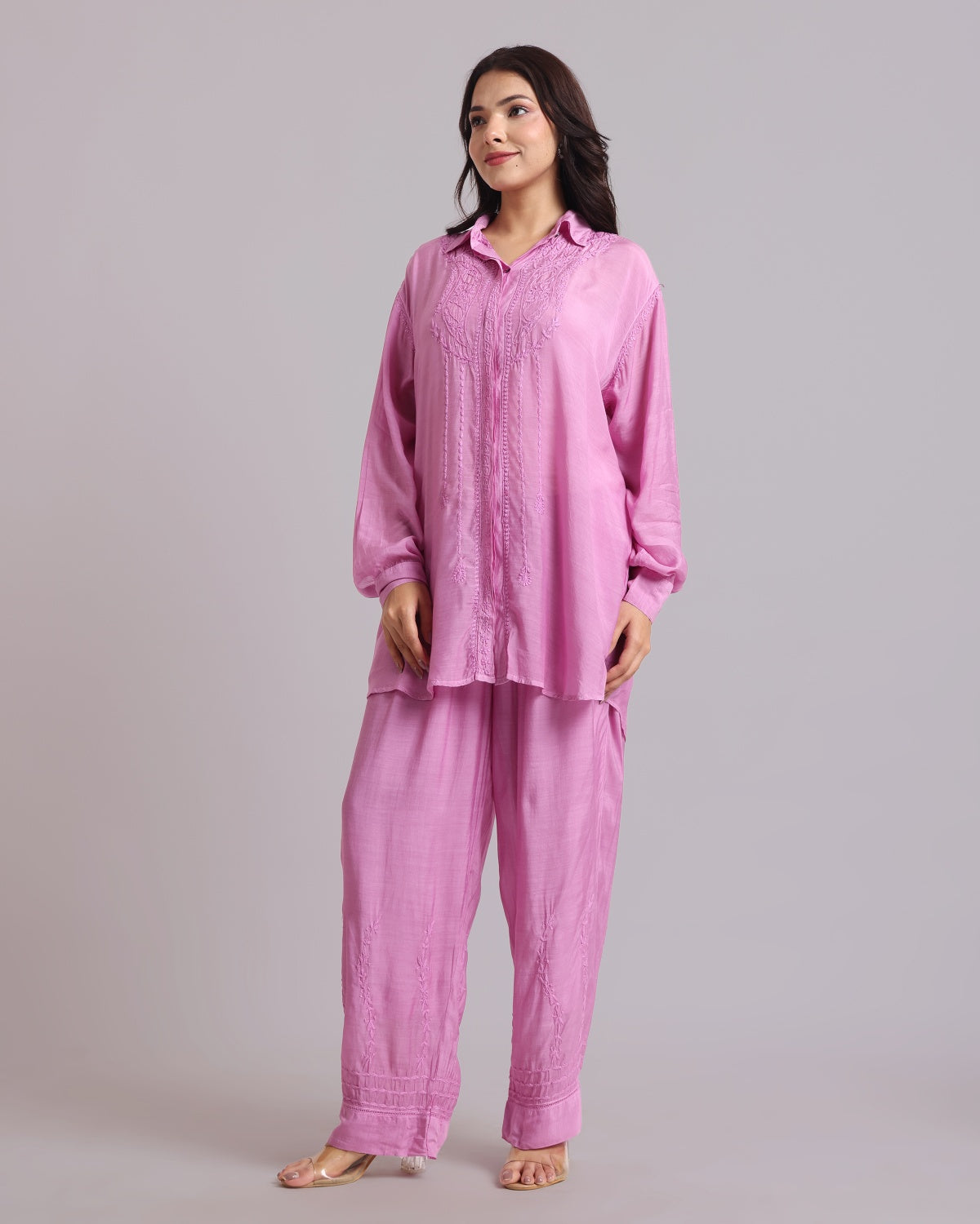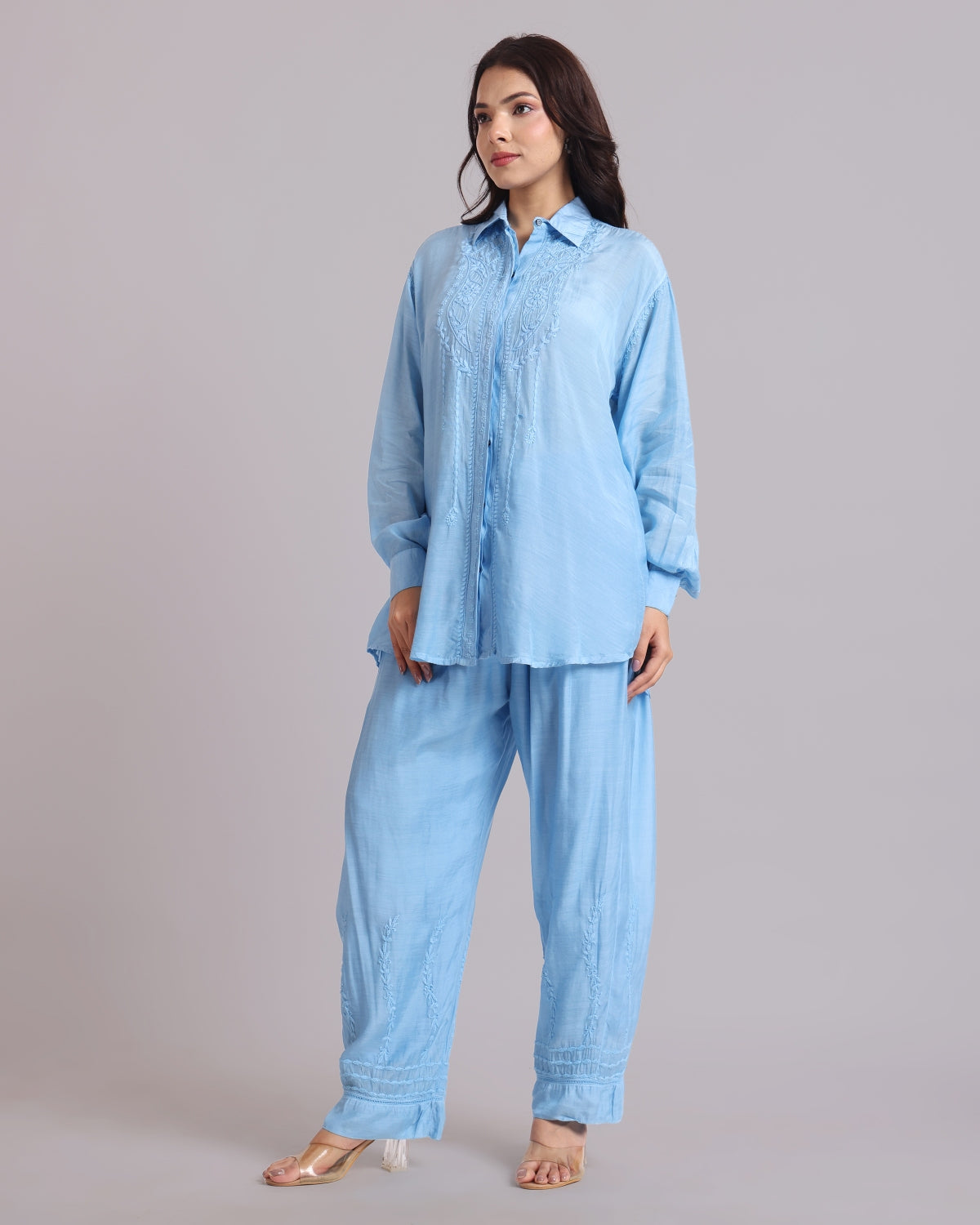 Librose Muslin Chikankari Embroidered 2Pc Co-ord set for women| Lucknowi Craft
