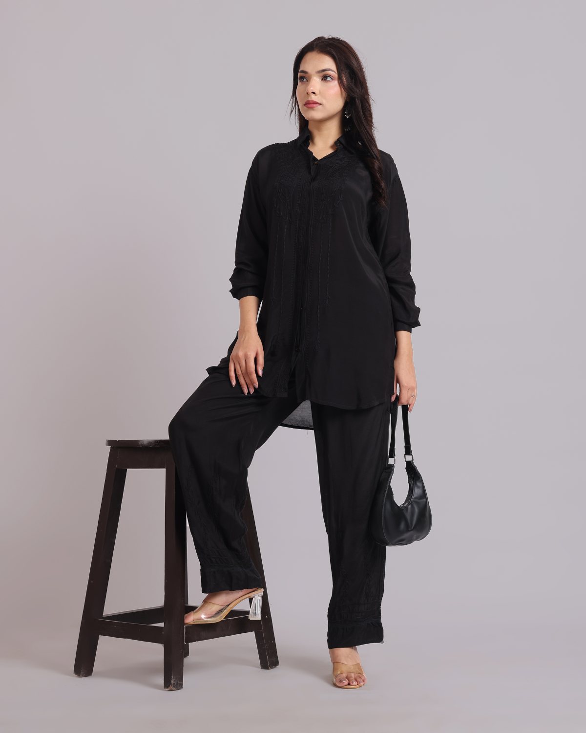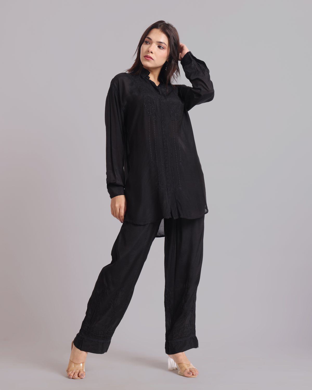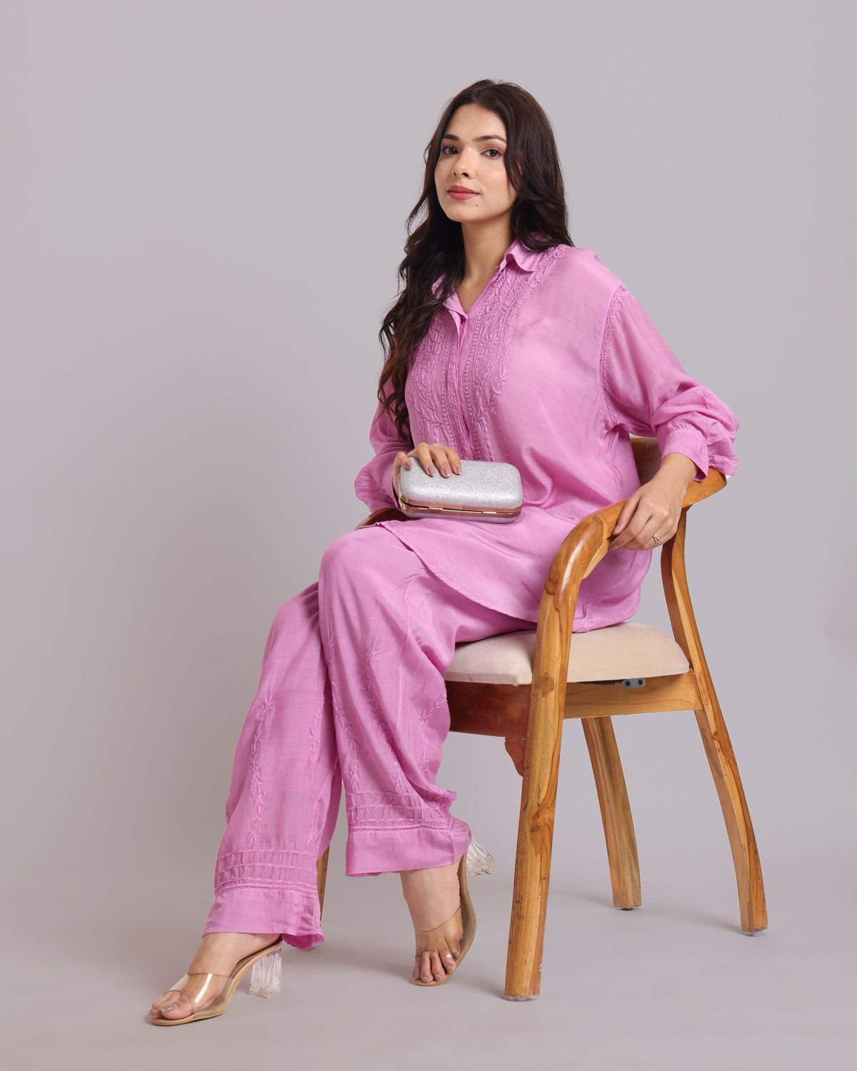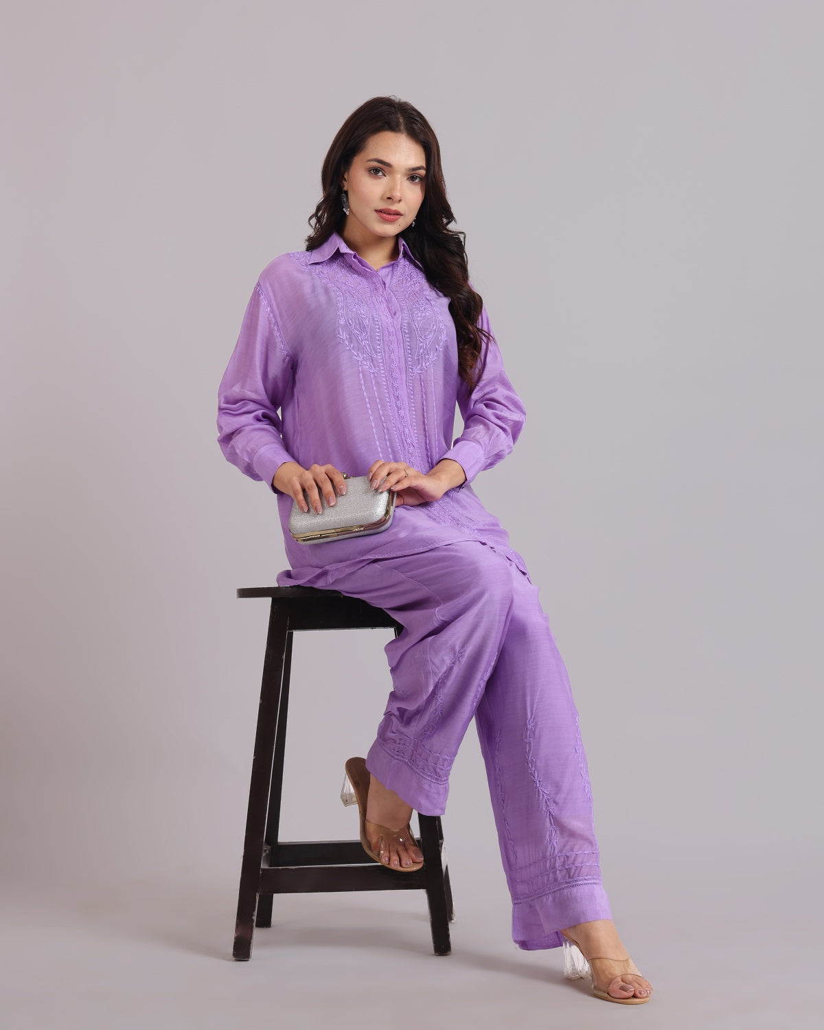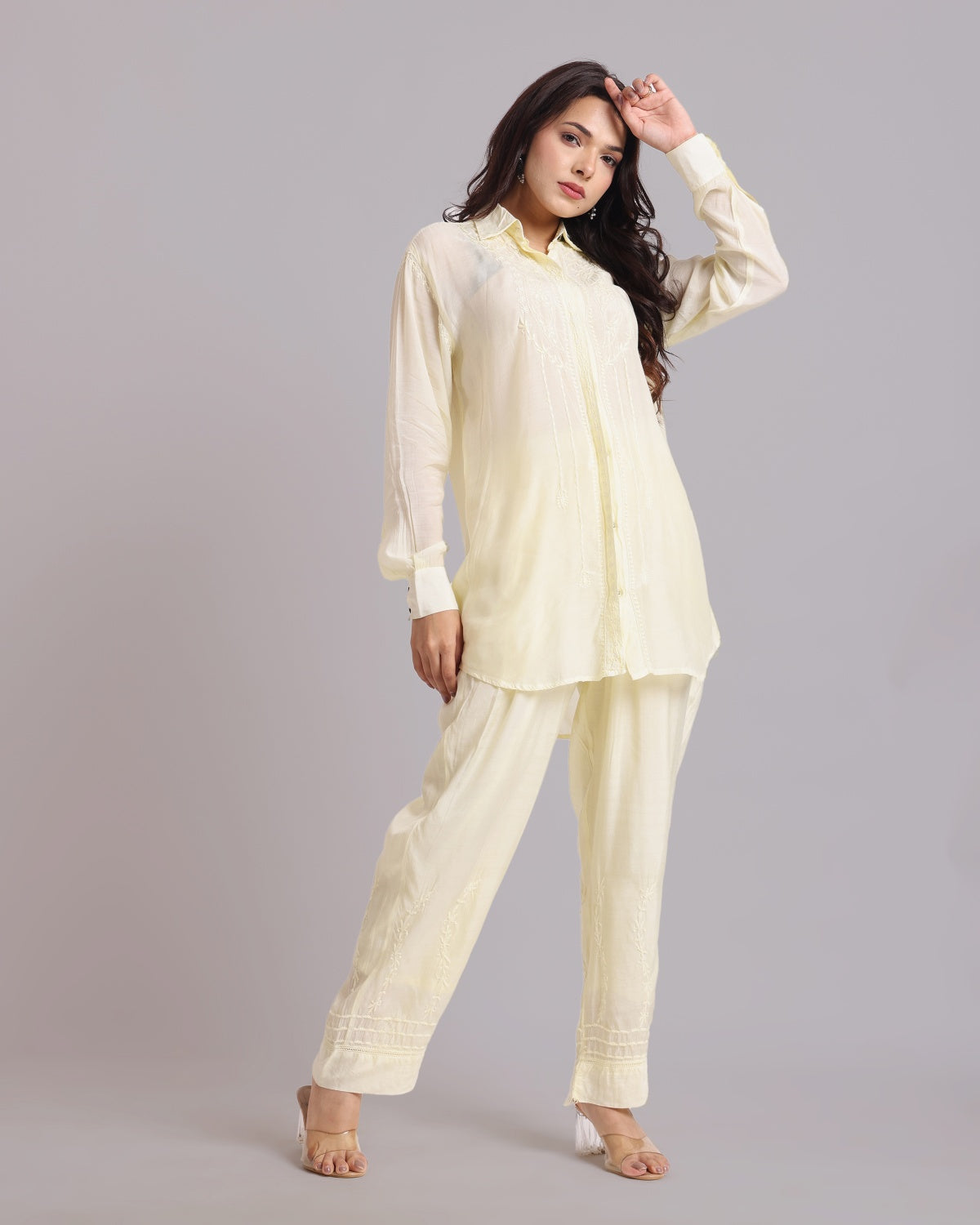 Librose Muslin Chikankari Embroidered 2Pc Co-ord set for women| Lucknowi Craft