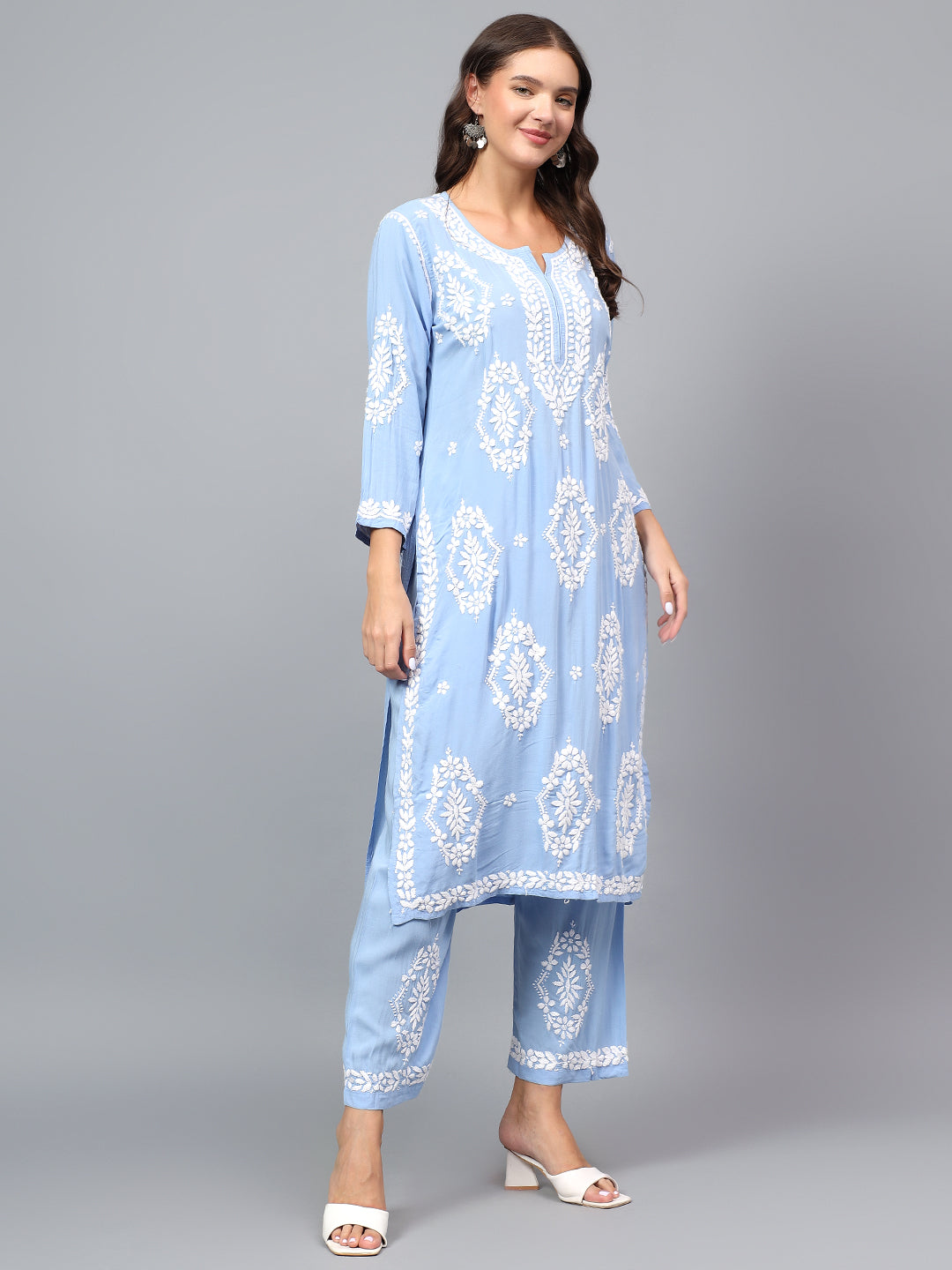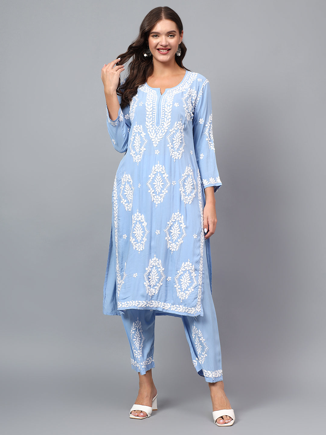 Premium modal fabric kurta plazzo set for women| Chikankari embroidered| Lucknowi craft
